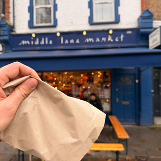 I started with a delicious lunch at Els Olive CafĂ© đ« (highly recommend the börek!), swung by Middle Lane Market for a festive mince pie đ„§, and then headed to FreshFields to pick up bread for dinner đ„.